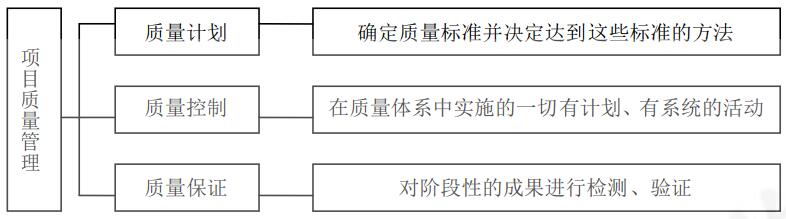 质量保证是实现产品或者服务质量提升的所有活动,保证措施必须要根据公一司质量控制的目标以及客户的要求来制定。一般情况下,项目质量保证措施可以由项目经理来组织,从而确保企业各项质量控制管理体系的顺利实施。下图3给出了项目质量保证中所包含的内容,只有项目质量满足了客户的需求,才能够得到客户更多更高的信任。