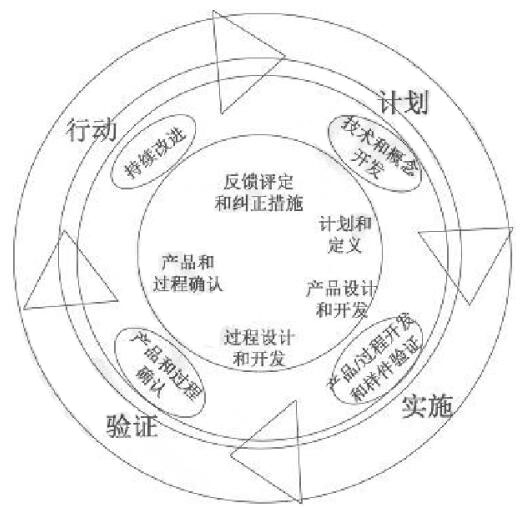 APQP可以分成5个不同的阶段:第一阶段是项目计划的制定;第二阶段是产品开发和设计阶段;第三阶段是过程设计阶段;第四个阶段是产品确认阶段;第五阶段则是质量反馈、纠正和评定阶段。这5个阶段共同构成了产品质量控制的闭环,它们之间的关系如下图2-2所示。