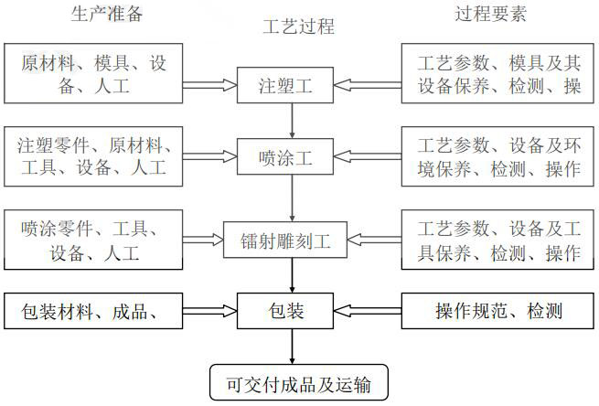 目前大部分汽车面板都使用塑料材料,并且通过喷漆赋予其一定的色泽。然后采用镭射雕刻技术,在各个塑料中雕刻相应的标志符号,为其赋予一定的含义,使其满足客户使用需求。下图3-1给出了汽车面板零件开发的工艺过程。从图3-1可以看出,汽车面板零件在制造过程中使用的工艺并不是特别复杂,且基本上都是比较传统的注塑、喷涂以及镭射雕刻等,不存在技术限制性。