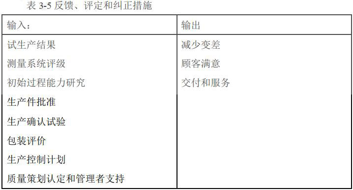 该阶段是产品质量的反馈、评定和纠正阶段,属于产品质量控制的延伸阶段。在面板制造阶段,如果发现了产品质量和预期存在的差别之后,可进行该阶段的输出。具体的输入和输出如下表3-5所示。