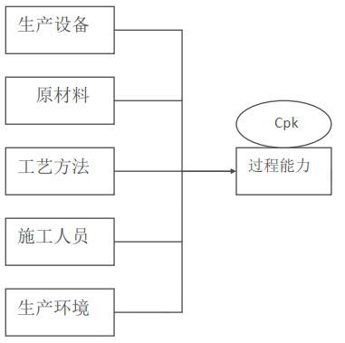 生产过程或者是生产工序在结构上主要是包括五个:生产设备、原材料、工艺方法、施工人员和生产环境,因此过程能力在内容上就不是单一的而是由多个因素综合在一起形成的结果,其中任何的一个因素产生问题都将会影响整个产品的质量,从而导致过程能力不能够很好的满足顾客的需求。其中生产过程的结构图如下图4-5所示。
