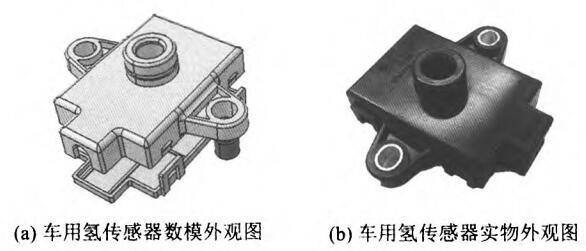 表1为研发出的某车用氢传感器性能参数,图6(a)为第二阶段所完成的外观三维效果罔与内部结构设计图,图6(b)为第三、四阶段完成的生产实物。
