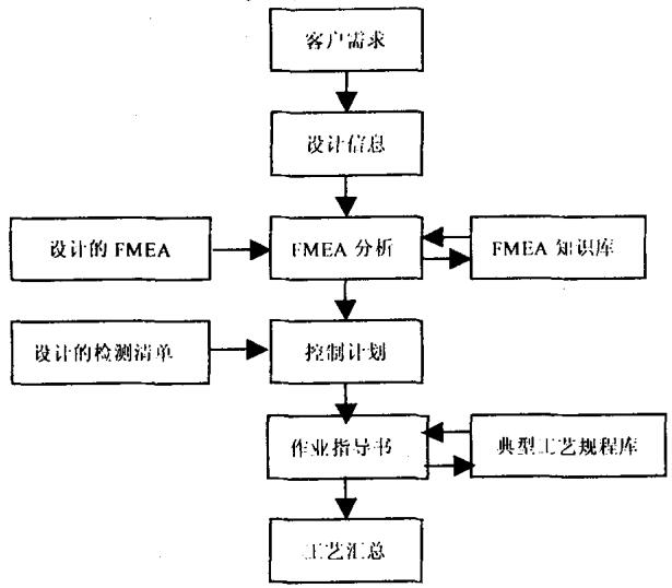 于是,通过整合后的APQP的质量模块从单纯面向功能的产品设计转变为面向功能与制造相结合的产品先期策划与设计。面向功能与制造相结合的产品先期策划与设计是指遵循APQP准则,为保证每次产品的计划达到顾客满意,引导资源实现质量目标,促使早期识别质量问题而采取预防措施,避免后期更改造成的损失,最终达到以最低的成本及时提供优质产品的目的。从传统的工艺规程设计转变为FMEA分析、工序控制计划、工艺规程相结合的工艺设计。