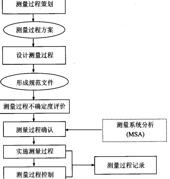 MSA参考手册中关于测量系统的定义是“用来对被测特性定量测量或定性评价的仪器或量具、标准、操作、方法、夹具、软件、人员、环境和假设的集 合;用来获得测量结果的整个过程”。根据这个定义,MSA就是对测量过程的分析。MSA中的方法都可以应用到测量过程的分析中,即用来确认测量过程是否满足要求。MSA在测量过程实现中的作用如图3所示。