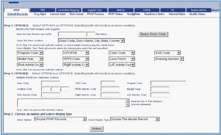 有三类用户可以使用此系统:首先汽车企业用户可查询所有零部件记录,其次是合资企业用户可查询与其合资企业相关的零部件记录,最后供应商用户可查询与其码相关的零部件记录。所有用户必须具有一有效的用户ID,且必须经授权才可进入PPAP模块。例如:选择PPAP记录–步骤2如图3.2所示