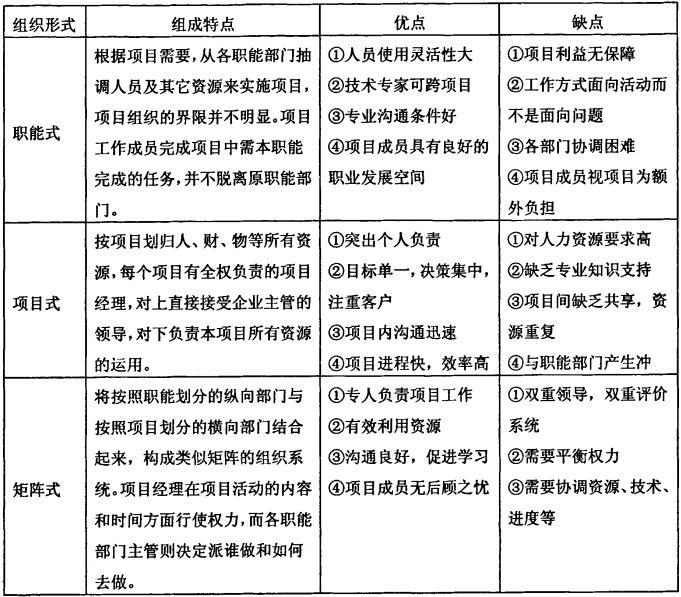 在具体的项目实践中,究竟选择何种组织形式没有一个可循的公式,必须结合企业特点、项目特点和项目所处的环境,才能做出适当的选择。
