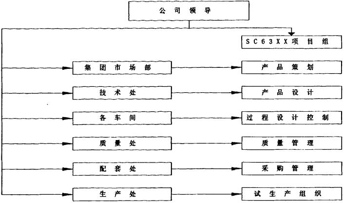 SC63××项目的先期市场调查、产品决策,由集团总部市场部牵头进行,南京××汽车有限公司参与项目实施一级网络计划的制定和质量目标的确定。集团总部下达设计任务书作为项目输入,我公司负责产品与过程设计、生产、持续改进。