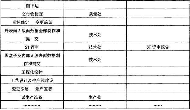 1)产品计划和定义:市场研究及产品确定、设计目标建立(由总部负责进行)、阶段质量目标建立、实施网络计划建立等;