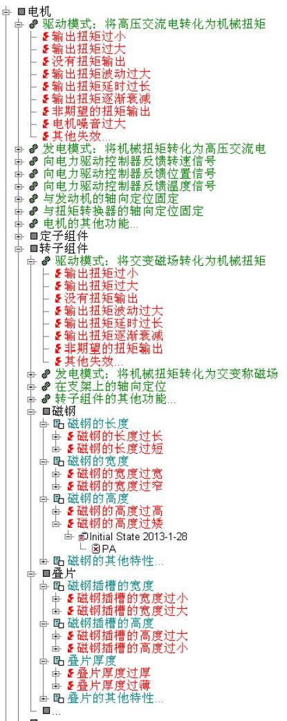 在将电机及其组件和零件的失效描述全部定义完成之后,便需要将这些失效描述,通过网络的形式链接起来,以表达这些失效之间的相互关系。