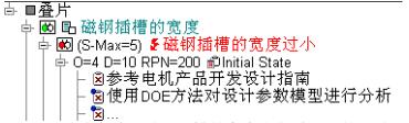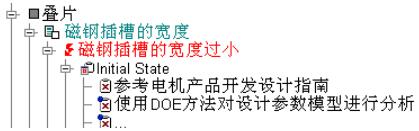 对于该失效网络,以叠片的“磁钢插槽的宽度定义过小”失效为例,对已经导入的措施进行的描述如“图24对于叠片失效“磁钢插槽的宽度定义过小”已导入的措施描述”所示。