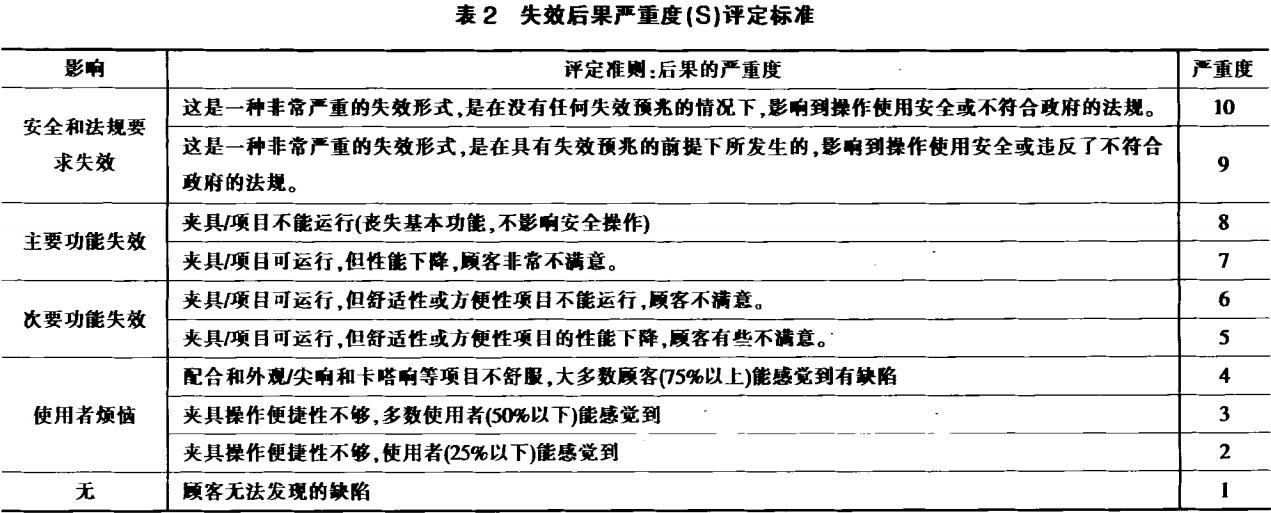2.2,3 制定焊装夹具DFMEA风险评定标准