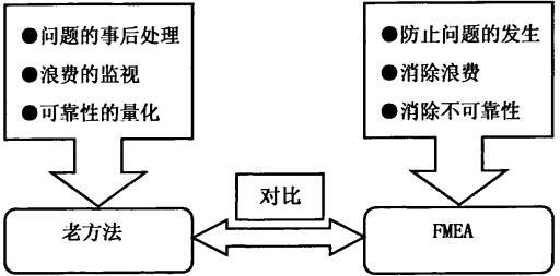 是一种评价起因和结果具有逻辑性和累积性的分析工具,目的是使企业和顾客免受损失,从而控制产品的成本,提高产品的质量和性能可靠性。FMEA技术最直观的结果是跨功能小组的集体知识的文件化,具有及时性,它是一种事前的预防技术,而不是一种事后弥补,要达到更好的效果,应预先花时间完成FMEA。在制定FMEA时,要采取有效的预防、纠正措施,同时进行跟踪,它是一份动态变化的文件,在整个产品开发和生产过程中,要根据具体情况不断地进行修改完善,始终反映最过程的最新水平和最新状况的相关措施,包括那些在生产后发生的情况。FMEA技术的理念与传统的思路方法区别如图所示: