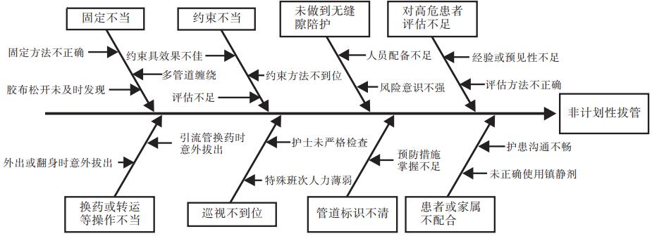 ③RCA采用回溯性分析方法,一方面从以往事件中发现原因,另一方面是研究小组经验性地提示,不可避免事件发生的偶然性与人为的偏差。因此,笔者提出护理风险管理研究中:应开展前瞻性的大样本调查,试图从临床实践中更准确与合理地发现非计划性拔管的影响因素或原因,为进一步预防和管理提供循证依据。