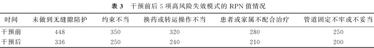 2.1干预前后5项高风险失效模式的RPN值情况见表3。