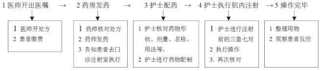小组成员共同讨论,列出门诊患者肌肉注射的流程图,包括所有子流程及子流程的每个步骤,见图1。