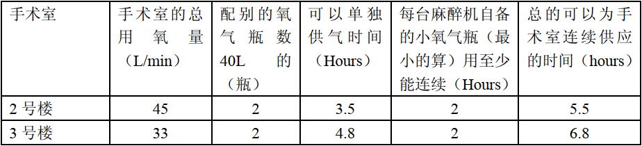 (2)各个氧气使用部门的单位时间内总耗氧不明确,备用瓶氧量没有一个明确的数据,可能导致出现不能保证充足供氧的极端情况。
